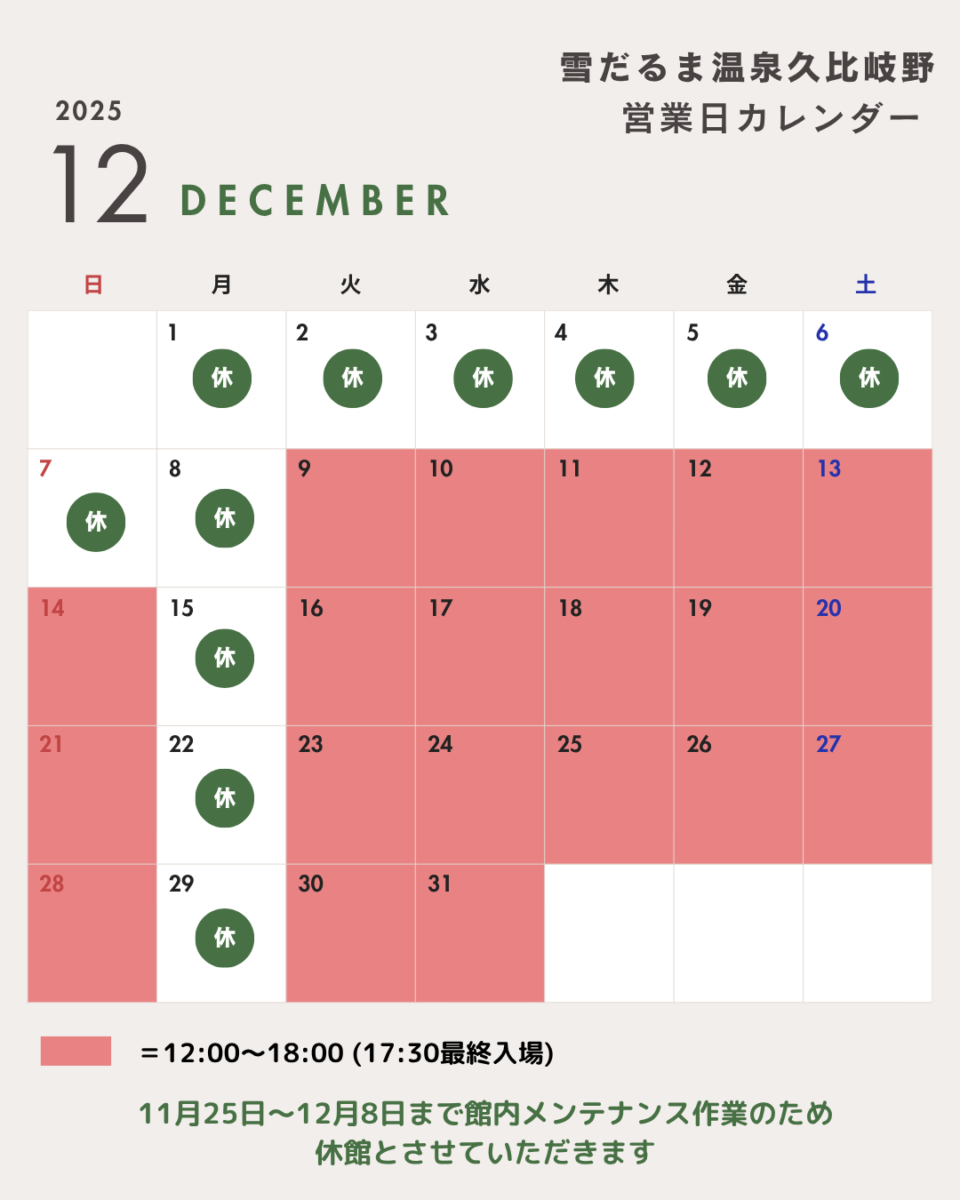 休館日:12/1・12/2・12/3・12/4・12/5・12/6・12/7・12/8・12/15・12/22・12/29