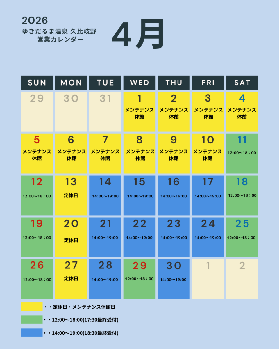 4月温泉休館日