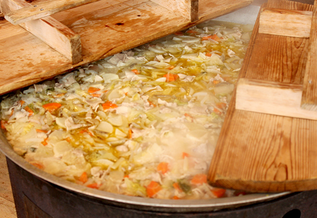 センターハウスフロント前ロビーにて安塚観光協会による豚汁の振る舞いを行います。